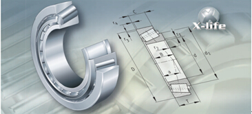 帶保持架的單列圓柱滾子軸承由內圈、外圈、圓柱滾子及保持架組件構成。外圈兩側帶有剛性擋邊或沒有擋邊,內圈帶有一個或兩個剛性擋邊或沒有擋邊。保持架防止滾子在滾動過程中相互接觸。 帶保持的圓柱滾子軸承具有良好的剛性,可以承受高的徑向載荷,并且因為帶有保持架,與滿裝設計的軸承相比,此類軸承更適用于高速場合。帶后綴E 的軸承經過優化承載能力更高,因而適于更高載荷的工況。此類軸承的一個套圈可拆分,便于安裝和拆卸。內、外圈均可緊配合。帶保持架的單列圓柱滾子軸承可用作非定位、半定位及定位軸承。